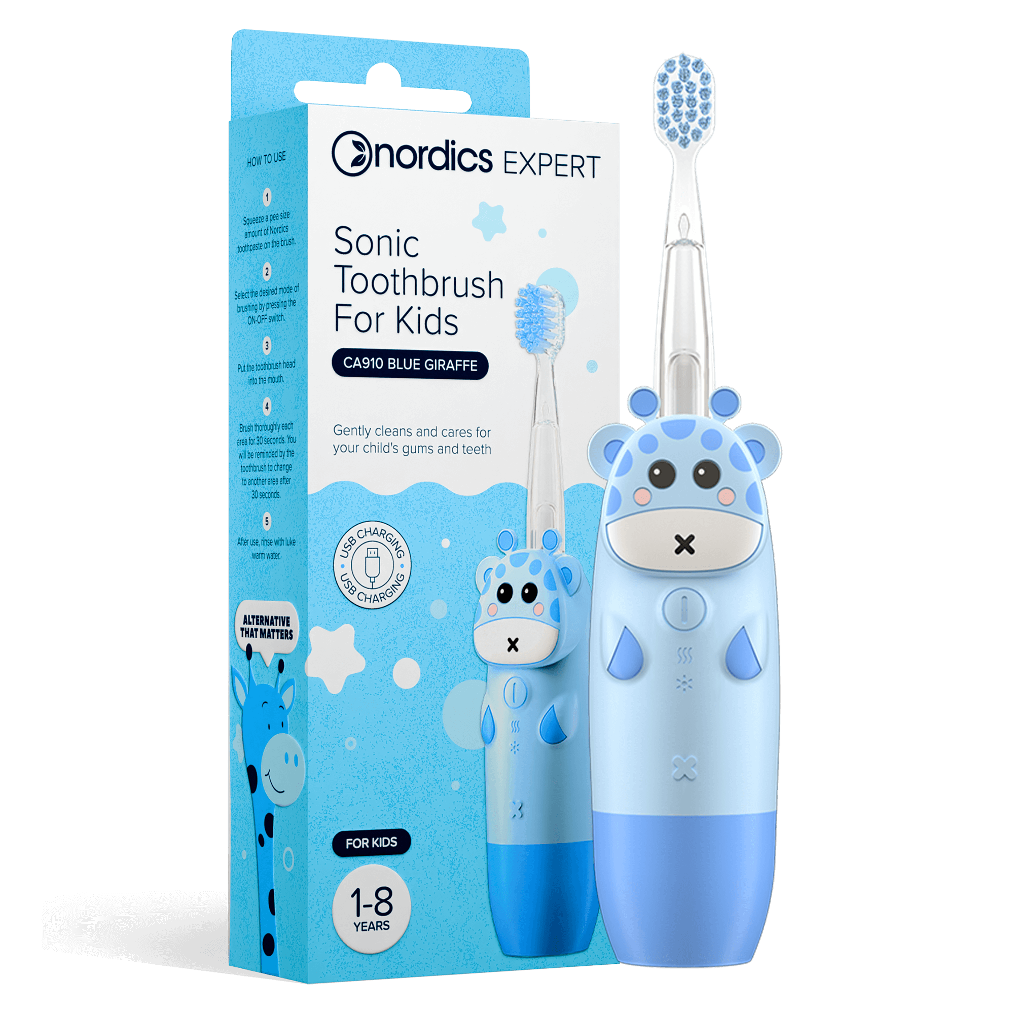 Periuta de dinti electrica pentru copii 1-8 ani – albastra Nordics